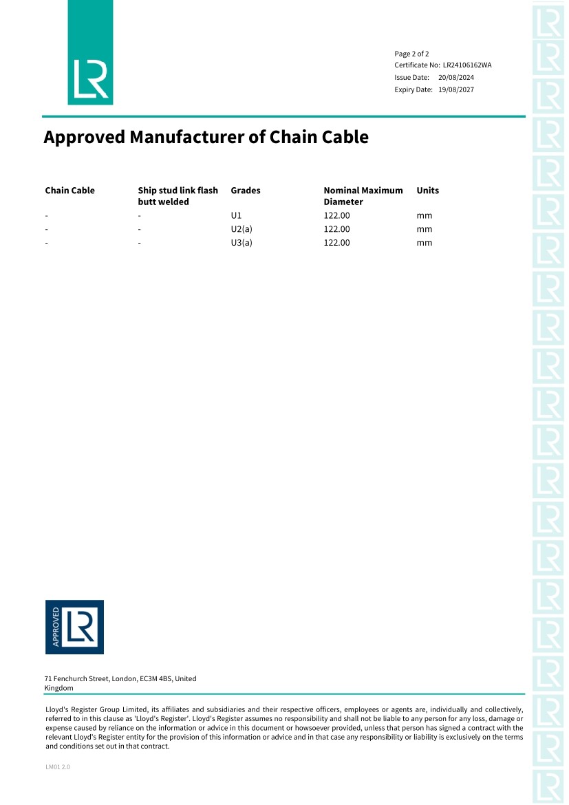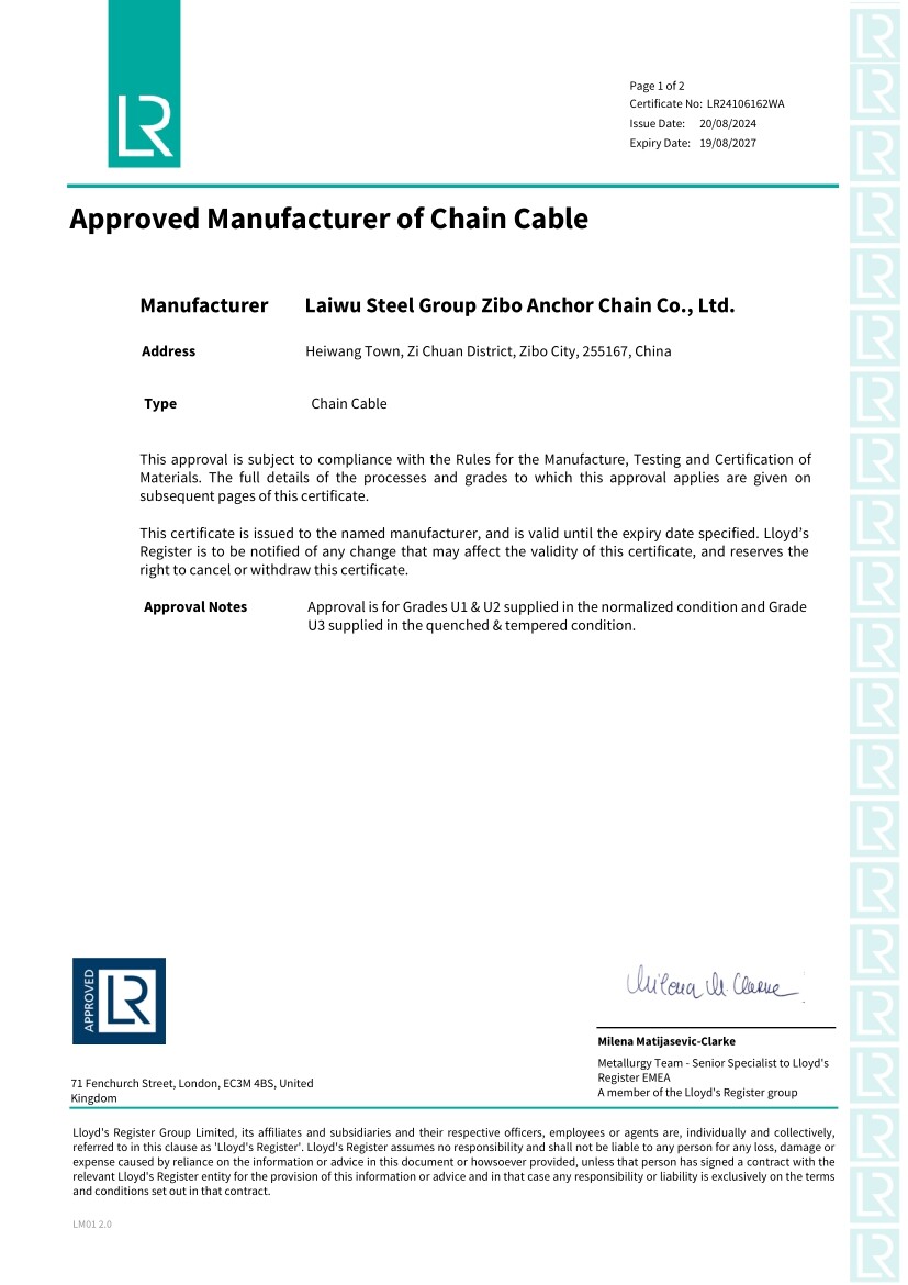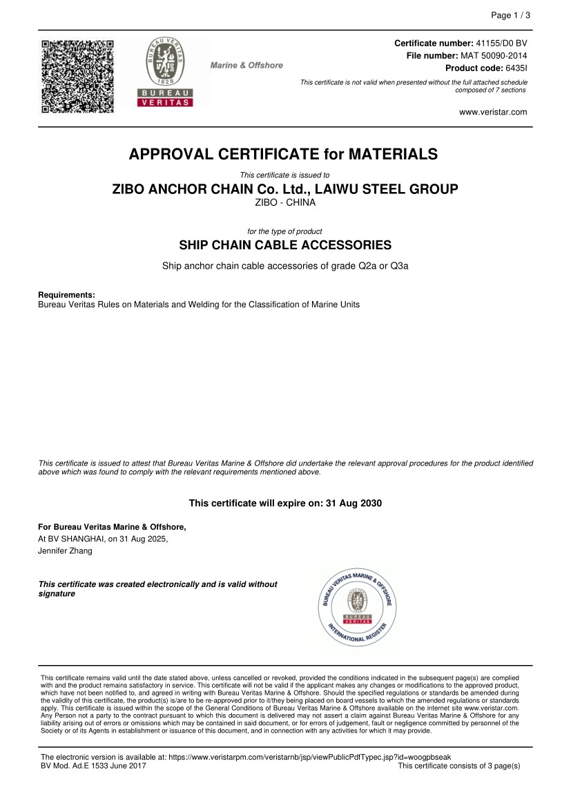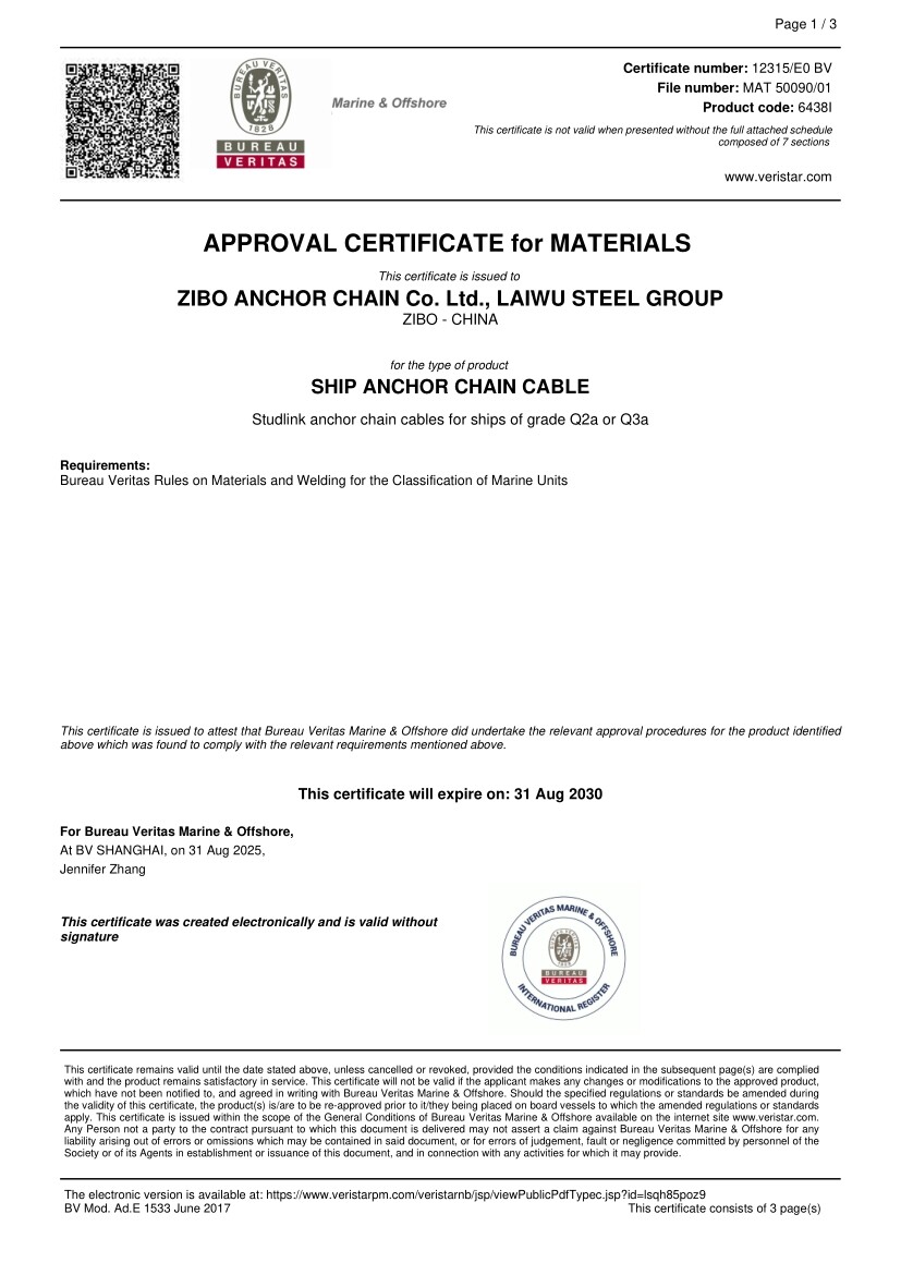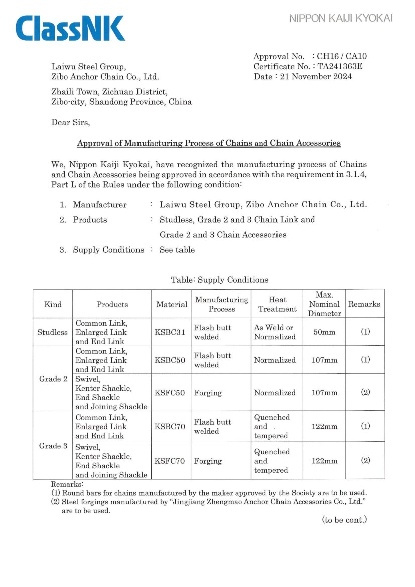 莱钢集团淄博锚链有限公司成立于1993年,是能够提供从原材料生产到锚链制造一站式服务的制造商。产品质量控制从源头开始。母公司山东钢铁集团是年产钢材100000吨的国家特大型钢铁联合企业。还控制着证券、银行、设计院等100多家经济实体和上市公司。